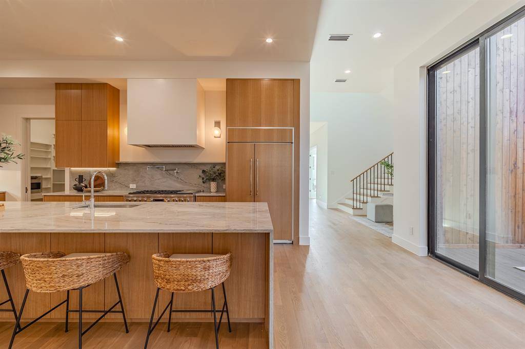 Welcome to 7319 Casa Loma, where elegance meets contemporary living in this stunning modern home steps from White Rock Lake boasts. Enjoy a blend of modern amenities with wonderful stylistic design of light natural & earth tone materials throughout. The result, a perfect sanctuary for any meticulous buyer looking for a beautifully unique home. Artfully crafted with designer selections made on every room of the house. Elegant without overstating. Every feature has been custom selected and custom designed. Curated selections and a team that went above the norm so you don't have to settle for status quo. As you step inside, your greeted by a brick facade that continues from the outside in, high expansive ceilings and an abundance of natural light, enhanced by walls of floor to ceiling windows throughout with various finishes. The floor plan is anchored by a culinary enthusiast kitchen with premium amenities, a true chef's delight, beautiful counters, & high end Monogram appliance package with pantry. Enjoy casual meals eat-in kitchen area on oversized waterfall island. The primary bedroom offers a serene retreat, white oak finished wall with a generous walk-in closet and walnut cabinets. Office off the entrance on the first with primary also down! Secondary living or use as game room up with ensuite baths for all 3 guest beds. Step outside to your private side yard, an ideal space for outdoor entertaining, enjoy intimate dinners or simply unwinding with outdoor space. Don't miss the opportunity to own this beautifully appointed home with its blend of elegance and functionality. Schedule your private tour today and experience 7319 Casa Loma for yourself!