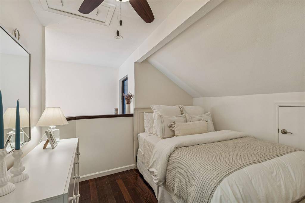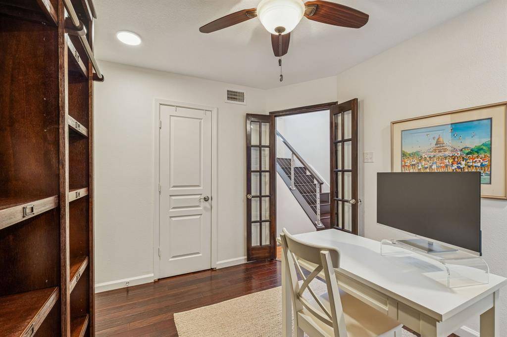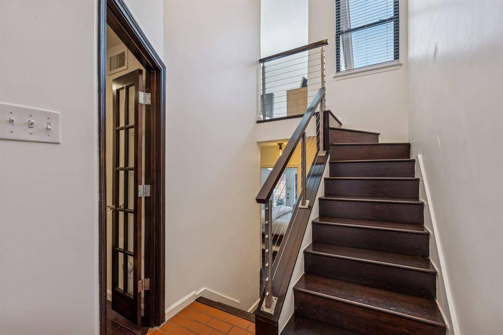 Welcome to your new home nestled in a serene tree-lined neighborhood that is conveniently located to all Dallas has to offer. This lovely property has nearly $200k worth of upgrades, boasts a 2 bed, 2 bath layout with an additional office-flex space. The spacious layout flows effortlessly, showcasing custom design elements throughout. Natural light floods the interior through large windows, creating a bright and inviting atmosphere. The primary suite, complete with a designer-inspired bathroom, is located downstairs and features access to a private outdoor space. The eat-in kitchen is a chef's delight with a full wall of cabinetry, stainless steel appliances, and elegant quartz countertops. Entertain in style in the living room, complete with a wet bar and inviting fireplace, and transition to your huge Trex balcony through dual French doors. Come check out your very on treehouse in the middle of Dallas!