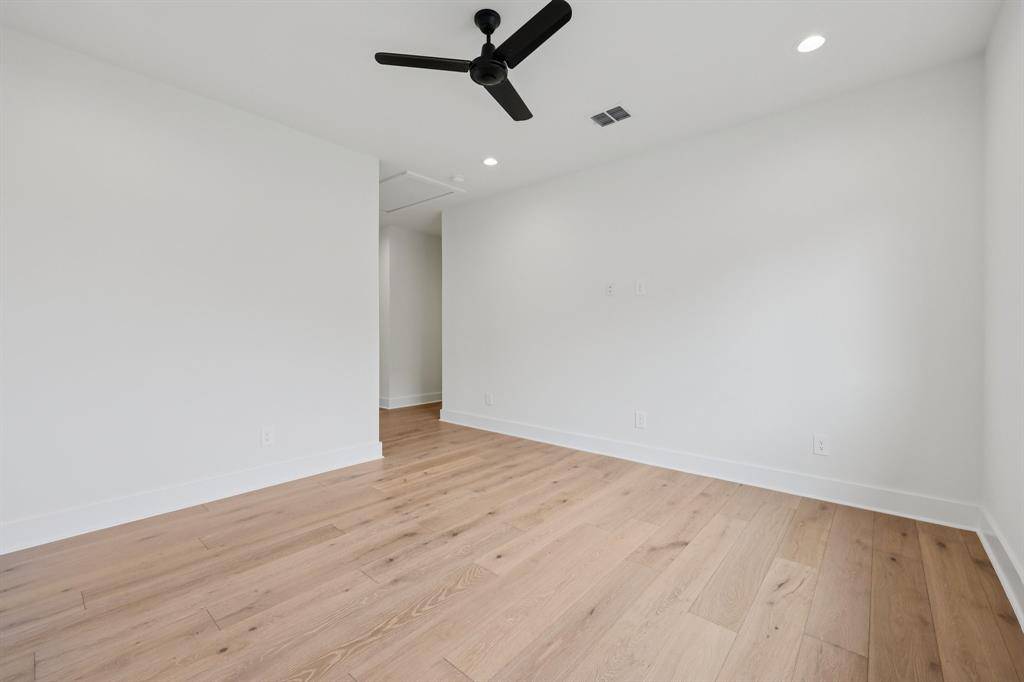 Located in the heart of Lake Highlands, this 4,850 sq ft custom home offers exceptional design, flexibility, and energy efficiency. Featuring 5 bedrooms, 5 full baths, and 1 half bath, the home welcomes you through twin 42 inch divided-light front doors into a custom-lit entry and private study with dedicated bath. The formal dining room showcases wainscoting and designer wallpaper. The expansive gourmet kitchen features double islands, quartzite countertops, custom soft-close cabinetry with functional built ins, and a premium appliance package including a 48 inch built in refrigerator freezer, two dishwashers, six burner gas range with griddle, double ovens, and pot filler. A large walk in pantry offers tailored shelving and a dedicated appliance station. The living room includes an electric fireplace and expansive sliding glass doors for seamless indoor outdoor living. The primary suite features custom lighting, a spa inspired bath with freestanding tub and rain shower, and a custom closet with built ins, safe, and direct utility room access. Upstairs includes a media room pre wired for sound and includes a wet bar, ice maker, and refrigerator; a large game room with flexible bonus space; four additional bedrooms; and three full baths, including a private two room suite with ensuite bath. Outdoor living features a covered patio with beadboard ceiling, ceiling fan, large format tile, and built in gas grill. Pool renderings available. Additional highlights include white oak wide plank floors, ceiling beams, solid core doors, custom trim, epoxy floored garage with storage, full yard irrigation with foundation watering, tankless water heater, dual zoned HVAC, and pre wiring for security and audio. Built to City of Dallas high standards with spray foam insulation, windows, impact resistant shingles, oversized gutters, and french drains to rear alley.
