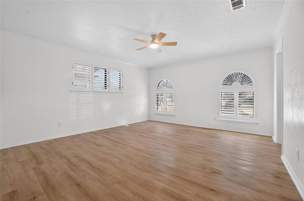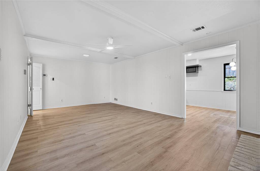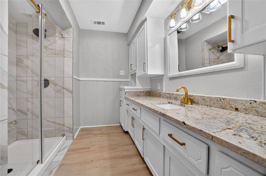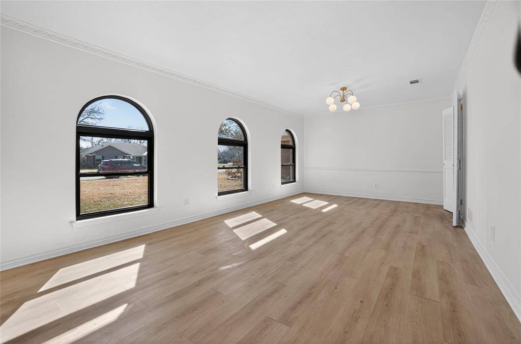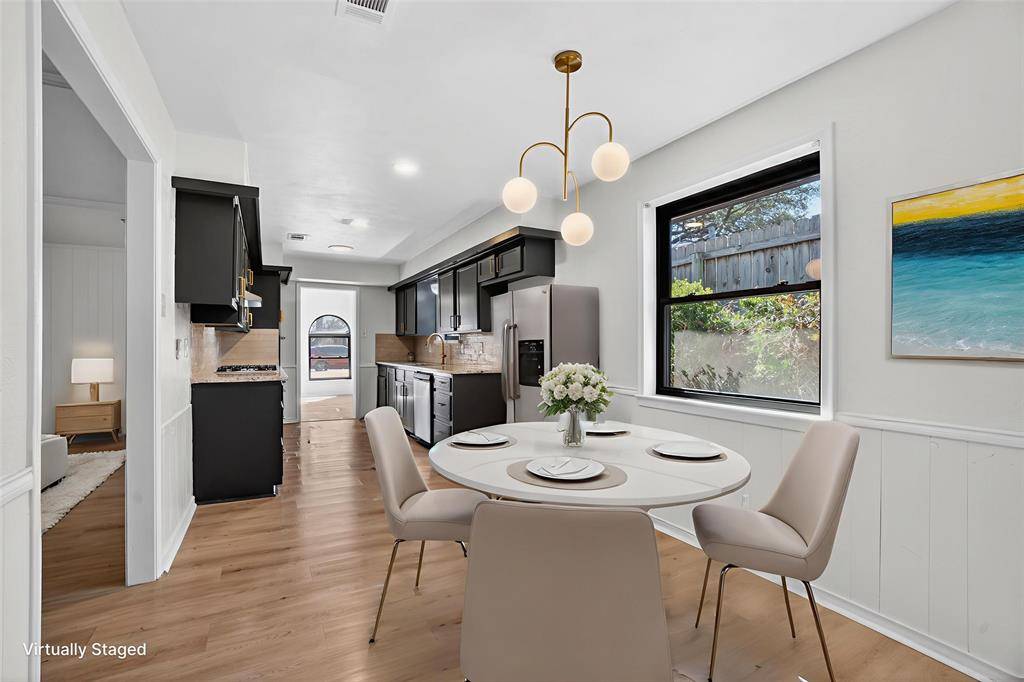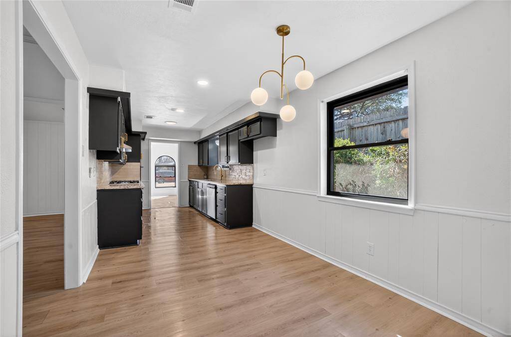This four bedroom, two and a half bath North Dallas residence features new luxury vinyl plank flooring, fresh paint inside and out, and updated kitchen and baths with granite countertops, a gas cooktop, and new appliances. The layout flows comfortably between living spaces, and the private backyard shaded by mature trees adds everyday charm and functionality.