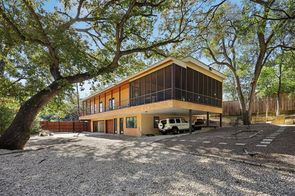 A striking Southwestern-style custom home with modern influences, designed by Far + Dang as the builder's personal residence, this architectural retreat sits on a rare double lot just moments from White Rock Lake. The dramatic Great Room measures approximately 55 x 22 feet, expanding to nearly 75 x 22 feet with bi-parting glass doors that open to the outdoors. Seventeen hand-adzed Ponderosa Pine beams sourced from New Mexico define the ceiling, while Brazilian hardwood floors enhance the wraparound decks, porches, and screened outdoor living area of approximately 573 square feet. In addition to the main air conditioned living space, the property features an approximately 823 square foot wraparound deck and a walk-out basement with an approximately 1,167 square foot five car garage plus additional boat or RV parking. Professional landscaping includes Texas Hill Country stone and mature trees, creating exceptional privacy. Designed for living, working, and entertaining, the home offers a dedicated office or flex space, designer finishes throughout, a fully equipped gym, sauna, and a backyard oasis with multiple entertaining areas and hot tub. Ideally located within walking distance to White Rock Lake with trails, parks and natural beauty and convenient access to downtown Dallas, Lakewood and top retail and dining destinations. This one-of-a-kind residence blends architectural character, functionality, and lifestyle in a premier East Dallas setting.