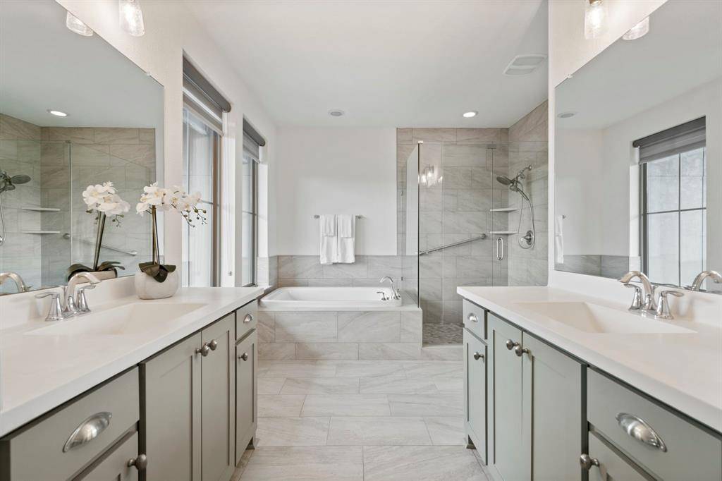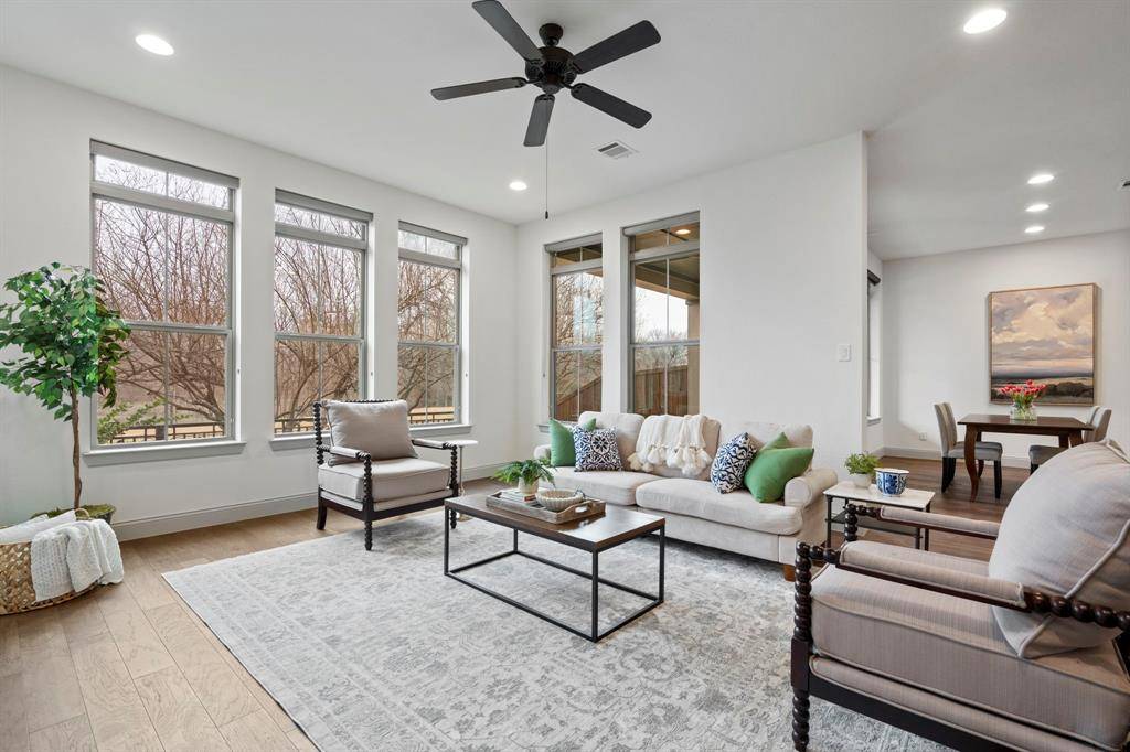 Enjoy refined living with breathtaking sunrise views over Watercrest Park's pond, greenbelt, and scenic trails in this beautifully upgraded residence in the coveted Enclave at Lake Highlands. Blending natural beauty with elevated design, the home offers sophisticated finishes and effortless comfort throughout. The light-filled first floor showcases wide-plank hardwoods, vaulted ceilings, custom blinds, and a striking gas fireplace with ceramic logs. At the center of the home, the chef's kitchen impresses with an oversized quartz island, premium KitchenAid stainless steel appliances, and generous space for gathering and entertaining. Upstairs, the private primary suite feels like a true retreat, complete with its own balcony overlooking the park. The spa-inspired bath has been freshly remodeled with dual vanities, a deep soaking tub, an expansive walk-in shower, and a separate water closet. A custom closet with direct laundry access adds thoughtful, everyday luxury. Additional highlights include a spacious two-car garage with room for a Texas-sized pickup and a premier location offering both tranquil surroundings and easy access to Lake Highlands Town Center's dining and retail. Zoned to highly sought-after White Rock Elementary.