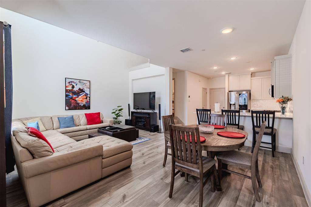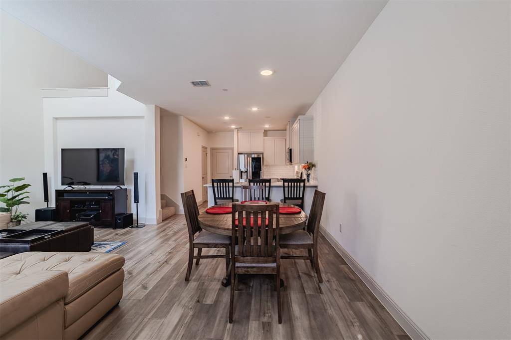 Welcome home to this beautifully designed newer construction 2-bedroom, 2.5-bath townhome built in 2021, located in the heart of Garland. Modern, bright, and thoughtfully laid out, this home offers the perfect blend of comfort, style, and convenience. Step inside to soaring tall ceilings that flood the space with natural light, creating an airy and inviting atmosphere. The open-concept living, dining, and kitchen areas flow seamlessly together—ideal for everyday living and effortless entertaining. Whether hosting friends or enjoying a quiet evening at home, this layout offers versatility and comfort. Upstairs, you'll find a spacious primary suite designed for relaxation. The massive walk-in closet provides abundant storage, while the ensuite bathroom features dual sinks, a standing shower, and a convenient linen closet. The laundry room is also located upstairs, just steps from the primary bedroom for added ease. The secondary bedroom includes its own private balcony—perfect for morning coffee or unwinding in the evening. Additional highlights include a 2-car garage and a well-maintained and award winning Riverset community packed with amenities, including a resort-style pool, covered pavilion with seating, park, dog run, walking paths and playground.