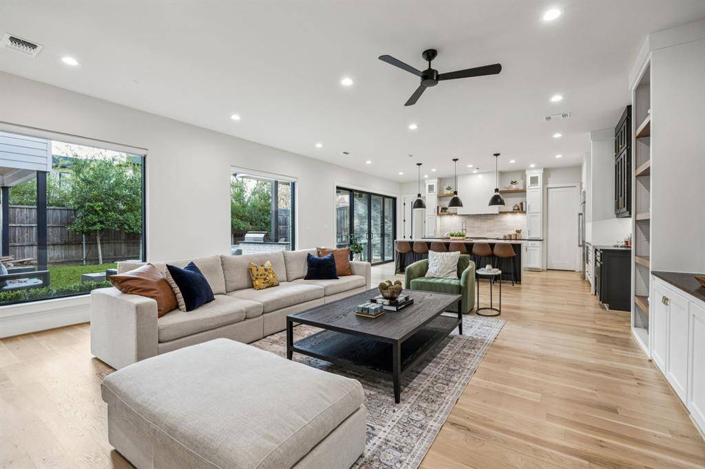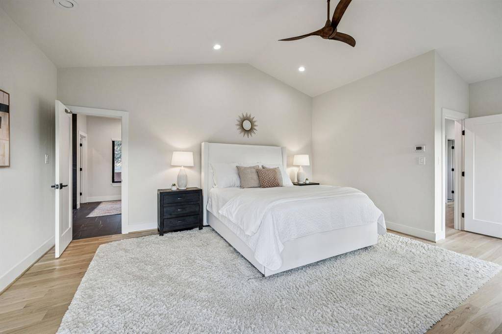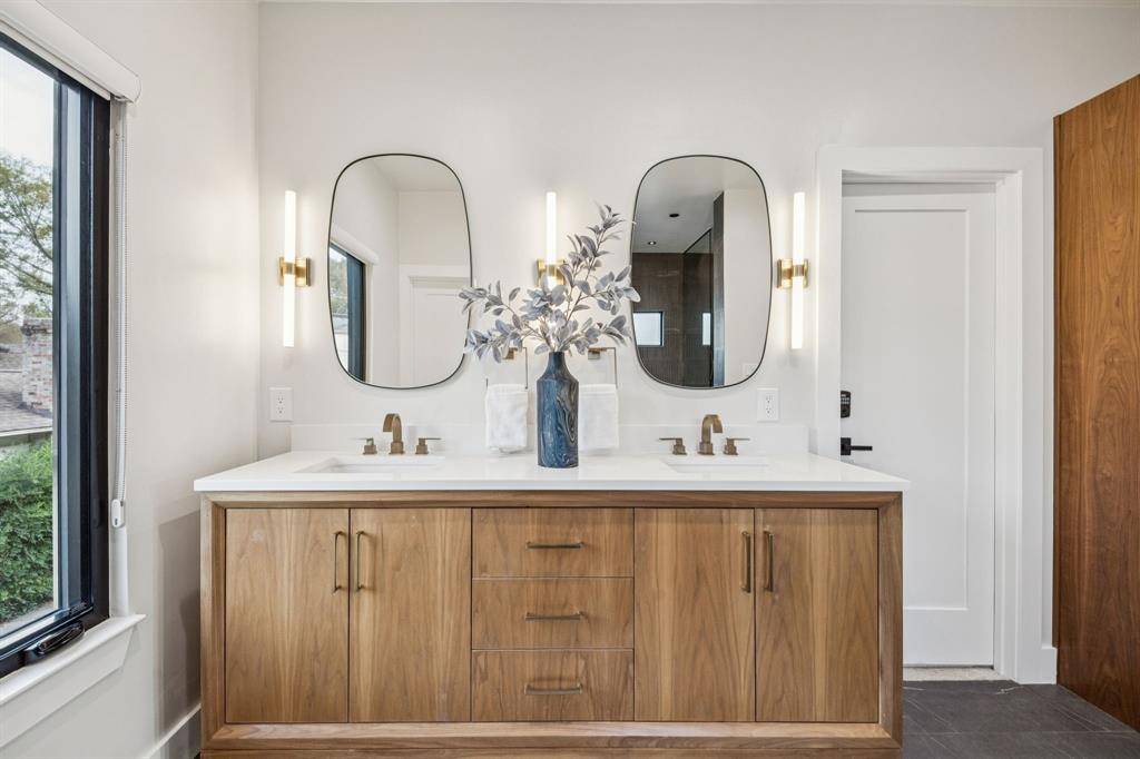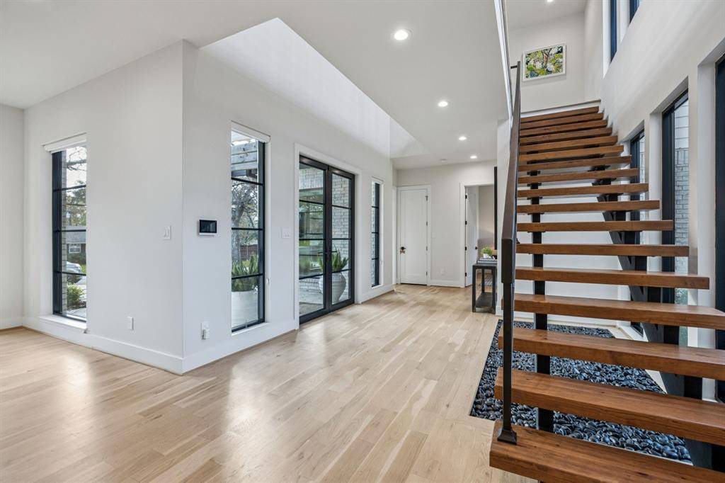 An Architectural Masterpiece by 5West Homes Step into a home that feels less like a residence and more like a curated exhibit—where every detail is intentional, elegant, and worthy of admiration. This stunning showcase by 5West Homes is a modern gallery of craftsmanship, thoughtfully designed to elevate daily living into an art form. White oak hardwoods stretch throughout the main level like refined brushstrokes, guiding you past professional-grade appliances, designer lighting, and a kitchen anchored by a sculptural, oversized working island. Floor-to-ceiling steel-framed windows and museum-finish walls transform natural light into an artistic medium, framing the treetops, pool, and outdoor living areas as ever-changing works of art. The floating staircase alone could be the centerpiece of a museum—light, architectural, and breathtaking. It rises beside a dramatic two-story wall of glass overlooking the pool, fire-pit lounge, and alfresco dining terrace. The grand front walk-up with double doors sets an immediate tone: this is a home meant to impress. Downstairs, the private office and guest suite offer elevated comfort, while upstairs hosts four additional bedrooms—each with its own adjacent full bathroom—culminating in a secluded primary sanctuary with vaulted ceilings and serene treetop views. A spacious upstairs utility room complements the large downstairs mudroom with its own utilities, ensuring beauty and function exist in equal measure. The living and dining spaces are flanked by a solid walnut wine display wall—an artistic installation in its own right—easily reimagined as a butler's pantry for the entertainer. The marble-wrapped fireplace stands as a striking focal point, framed by windows that invite the landscape inside and create a sense of peaceful connection. A rear-entry oversized two-car garage preserves privacy while an additional front parking pad provides easy, quick access for guests or everyday convenience.