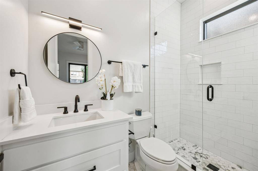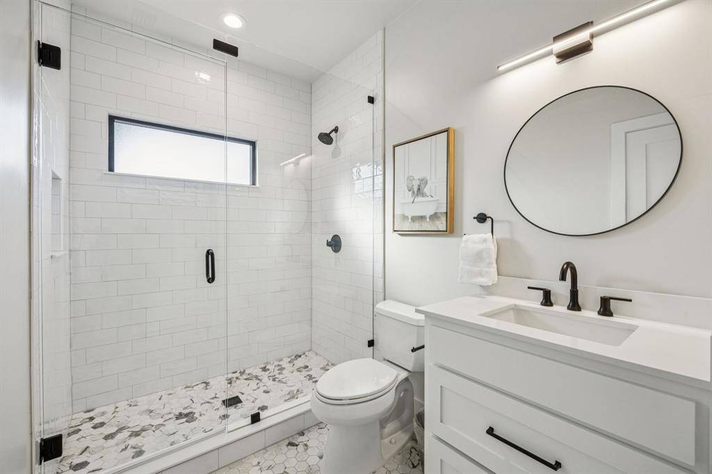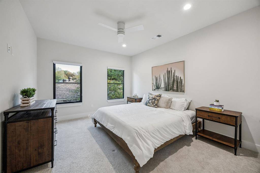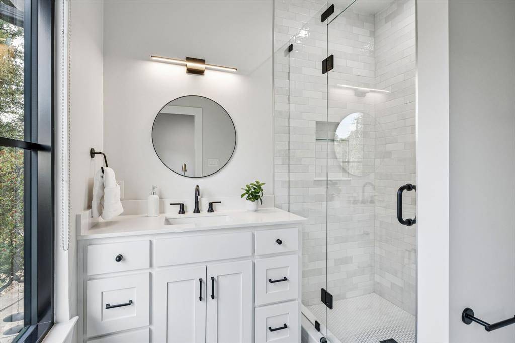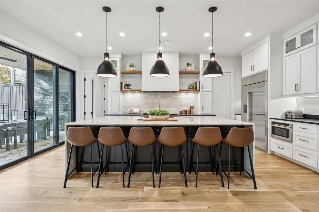 An Architectural Masterpiece by 5West Homes Step into a home that feels less like a residence and more like a curated exhibit—where every detail is intentional, elegant, and worthy of admiration. This stunning showcase by 5West Homes is a modern gallery of craftsmanship, thoughtfully designed to elevate daily living into an art form. White oak hardwoods stretch throughout the main level like refined brushstrokes, guiding you past professional-grade appliances, designer lighting, and a kitchen anchored by a sculptural, oversized working island. Floor-to-ceiling steel-framed windows and museum-finish walls transform natural light into an artistic medium, framing the treetops, pool, and outdoor living areas as ever-changing works of art. The floating staircase alone could be the centerpiece of a museum—light, architectural, and breathtaking. It rises beside a dramatic two-story wall of glass overlooking the pool, fire-pit lounge, and alfresco dining terrace. The grand front walk-up with double doors sets an immediate tone: this is a home meant to impress. Downstairs, the private office and guest suite offer elevated comfort, while upstairs hosts four additional bedrooms—each with its own adjacent full bathroom—culminating in a secluded primary sanctuary with vaulted ceilings and serene treetop views. A spacious upstairs utility room complements the large downstairs mudroom with its own utilities, ensuring beauty and function exist in equal measure. The living and dining spaces are flanked by a solid walnut wine display wall—an artistic installation in its own right—easily reimagined as a butler's pantry for the entertainer. The marble-wrapped fireplace stands as a striking focal point, framed by windows that invite the landscape inside and create a sense of peaceful connection. A rear-entry oversized two-car garage preserves privacy while an additional front parking pad provides easy, quick access for guests or everyday convenience.