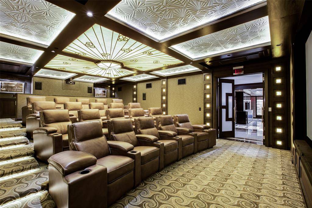 The Residences at the Stoneleigh offers a full suite of resort-inspired amenities, including a pool and hot tub with fire features and grilling areas, a landscaped lawn and pet park with skyline views, an event space with catering kitchen, fitness center, club-style locker rooms with steam and dry saunas, a private theater, owners' lounge, 24-hour concierge and valet.