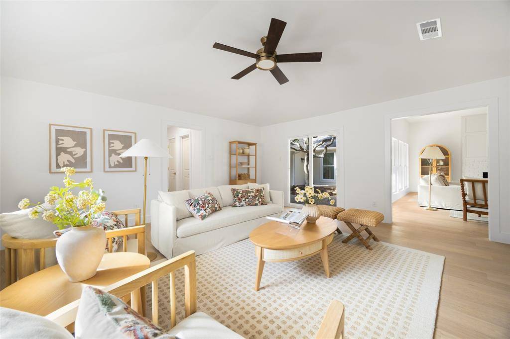 There's just something about 9210 Windy Crest. Step inside and that something resonates immediately — beyond the open sightlines, a quiet warmth invites. Each space unfolds into another with graceful depth, offering room to spread out while maintaining connection. Beautiful yet intimate, it simply feels like home. Graced by a pool, the home wraps around a gracious back patio framed by views from multiple rooms, perfect for entertaining, morning coffee, and evening aperitif. Thoughtfully reimagined by Maverick Design and Wedgewood Homes, this single-story rests on a .2-acre homesite shaded by mature trees. 4 bedrooms (one staged as an office), 3 bathrooms, 2 living spaces (one can be used as an office-flex space), complete the thoughtful floor plan. A beautifully appointed kitchen, defined by light cabinetry, a bespoke vent hood, and a six-burner gas range, will satisfy even the most discerning tastes. The primary living area gathers comfortably around the fireplace, while the dining space offers flexibility for intimate evenings or larger celebrations. A dedicated study provides a quiet work-from-home retreat, and a secondary living area adapts beautifully to your needs — ideal as a media room, fitness space, playroom. The primary suite opens directly to the covered patio and pool, and is complemented by a spa-inspired bath with soaking tub and large walk-in shower. 2 additional bedrooms are thoughtfully positioned with stylish full bathrooms (2). Outdoor living feels both inviting and manageable. The covered patio extends the interior outdoors, overlooking a private pool designed for year-round enjoyment. Behind the scenes, meaningful improvements support long-term comfort and efficiency, ask agent for details. Ideally located with convenient access to shopping, dining, and major routes, this home pairs refined aesthetics with everyday livability in one of Lake Highlands' most cherished neighborhoods.