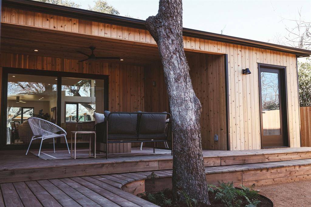 If you're looking for a home that fits perfectly into the ideals of East Dallas's Little Forest Hills – a one-of-a-kind charmer surrounded by big trees, but that also comes with new amenities and more space, look no further than 9028 Santa Clara. A home built by the people of East Dallas, for the people of East Dallas. This home was custom designed just for this very lot. Three exterior walls were preserved from the original house to maintain the authentic facade and charm of the neighborhood. This pier and beam home's footprint is nestled among the existing trees, the second story is tucked behind the canopy. Offering 2,708 square feet, the home features 4 bedrooms and 3 baths with a layout that lives much larger than it appears from the street. The open-concept main living area centers around a spacious kitchen designed for entertaining, flowing naturally into the dining and living spaces without wasted square footage. A cedar-covered back patio extends the living outdoors and creates an ideal setting for gatherings. This custom home offers flexibility with two primary suite options — a private suite on the first floor, or the opportunity to use the entire upstairs level as a primary retreat. Quality and efficiency were prioritized throughout, including a Pella Lifestyle Series window package, spray foam insulation, 5-8-inch drywall, electric HVAC systems with dedicated heat-pump system, a tankless water heater, and an oversized 2-inch gas line ready for future outdoor additions. An oversized two-car garage features dual garage doors, allowing the space to open directly to the backyard and function as an extension of the entertaining area — seamlessly connecting indoor and outdoor living. Located less than one mile from White Rock Lake and the Dallas Arboretum and Botanical Garden, with access to the 10-mile trail system. Enjoy walking to the neighborhood farmers market just down the block during spring, summer, and fall.