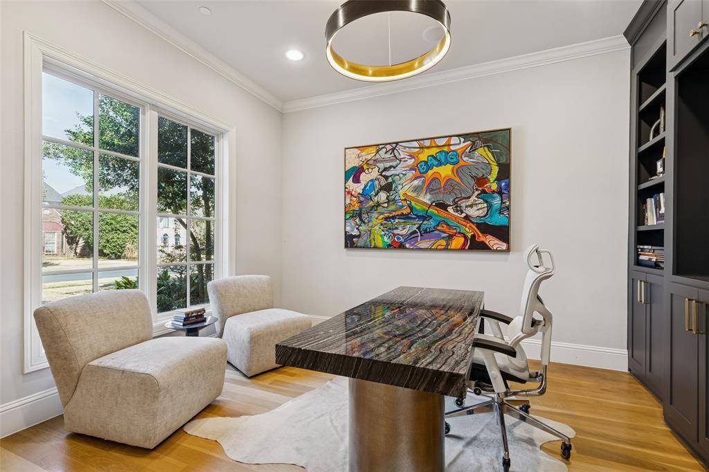 Park Cities Showstopper — Custom Luxury at Its Finest! This exceptional custom-built smart home offers refined elegance, modern comfort, and pristine condition throughout. Located in Highland Park ISD, this light-filled 4-bedroom, 4.5-bath residence is thoughtfully designed for both everyday living and sophisticated entertaining. A striking entry is flanked by a formal dining area and an elegant study. The welcoming living room features a stately fireplace and opens to a covered patio with an additional outdoor fireplace, creating an effortless indoor-outdoor flow. A stylish dry bar complements the entertaining spaces, while the chef's kitchen impresses with premium appliances, abundant prep space, large island with seating, a butler's pantry with wine refrigerator, and a spacious walk-in pantry. The serene primary retreat showcases a spa-inspired ensuite with dual vanities, a large soaking tub, separate shower, and a custom walk-in closet. Generously sized secondary bedrooms each offer ensuite baths and walk-in closets for exceptional comfort and privacy. Approximately 900 square feet of combined unfinished expansion space across the second and third floors provides outstanding flexibility for future living areas, a media room, or additional suites. Outdoors, enjoy a beautifully heated saltwater pool, a small grass area, and an electronic rear gate for privacy. The three-car garage includes two tandem spaces (front to back), plus an additional bay. A side garage door opens directly toward the backyard pool, allowing the door to be raised to create a large, covered entertaining space on the epoxy-finished floor—perfect for hosting poolside gatherings. This highly energy-efficient smart home offers remote control of lighting, pool systems, irrigation, alarm, locks, thermostat, and garage door, delivering luxury that is as functional as it is stunning.