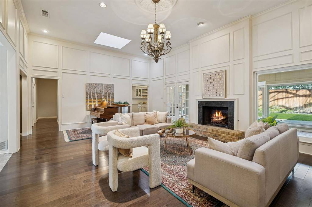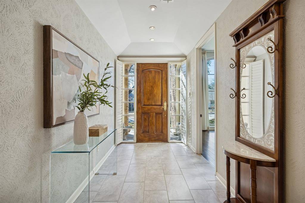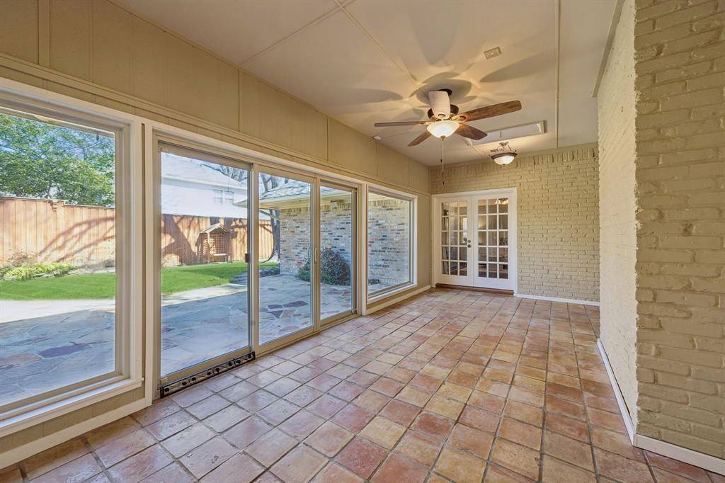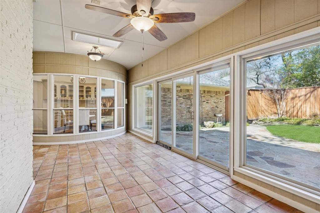 This Pebble Creek 4-bedroom home has the space & elegance you've been searching for, located in sought-after Merriman Park Elementary zone! The 1-story floor plan features elevated ceilings in the living & dining areas, rooms that are great for entertaining while still offering privacy when needed. The bedrooms are positioned along the right corridor of the home, highlighted by the 19' x 15' primary bedroom. The primary has nicely updated dual vanities, his & hers walk-in closets, garden tub & separate shower. A pair of the guest bedrooms share a Jack N Jill bathroom on the right corridor, but there is also a stunning SEPARATE OFFICE with amazing built-ins and its own full bathroom off the left hallway. As you make your way to the backyard, one will find a wall of windows to relax or play in the sunroom. Sunroom overlooks a flagstone patio, true yard space with a 10 ft privacy fence, & a mature oak tree to provide shade. Other features include a wet bar, crown molding, skylights, plantation shutters and huge laundry room. Don't miss the hidden closet in one of the guest rooms! Nestled on an interior lot in a stunning & quiet neighborhood, come see one of the best sections of Lake Highlands! Some recent updates include a 2025 HVAC, 2019 roof, & 2024 Chamberlain garage opener. 5 min drive to access 635 or 75. 10 min drive to White Rock Lake, roughly 20 mins to downtown Dallas, & 25 min drive to DFW airport!