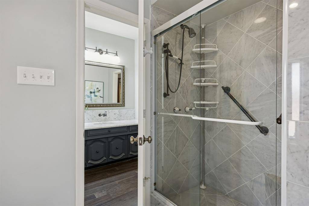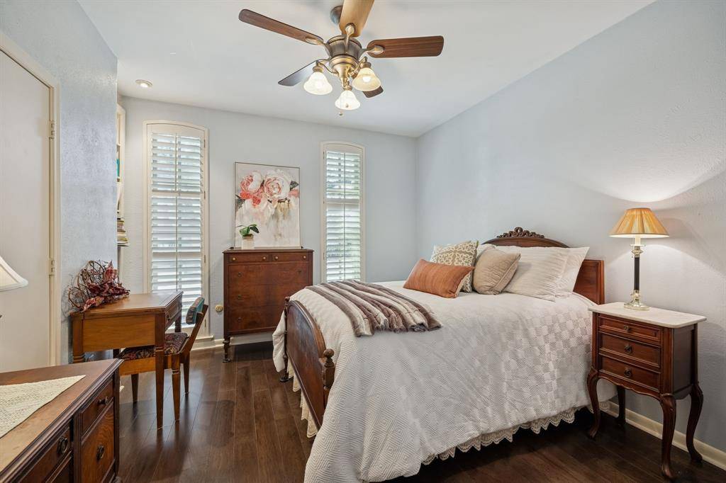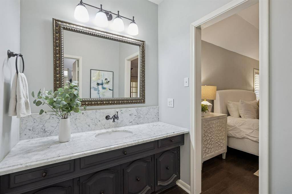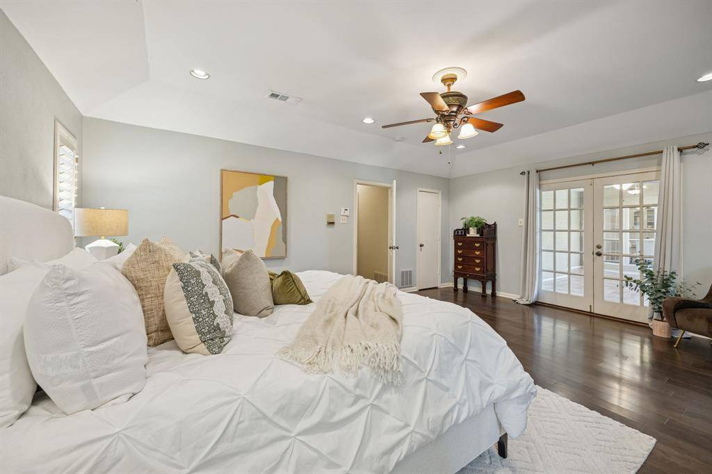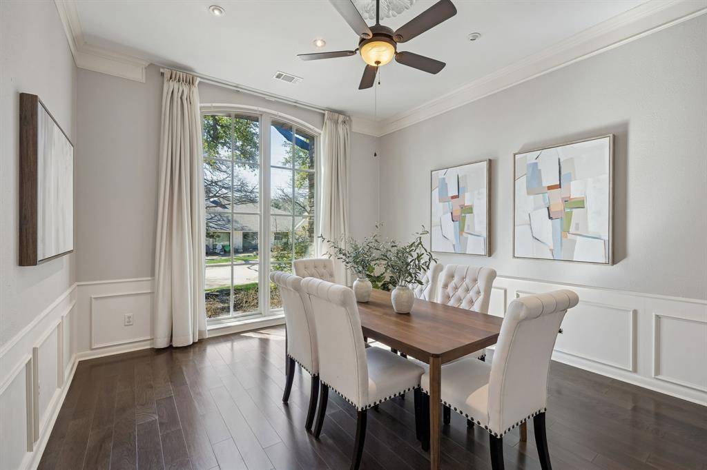 This Pebble Creek 4-bedroom home has the space & elegance you've been searching for, located in sought-after Merriman Park Elementary zone! The 1-story floor plan features elevated ceilings in the living & dining areas, rooms that are great for entertaining while still offering privacy when needed. The bedrooms are positioned along the right corridor of the home, highlighted by the 19' x 15' primary bedroom. The primary has nicely updated dual vanities, his & hers walk-in closets, garden tub & separate shower. A pair of the guest bedrooms share a Jack N Jill bathroom on the right corridor, but there is also a stunning SEPARATE OFFICE with amazing built-ins and its own full bathroom off the left hallway. As you make your way to the backyard, one will find a wall of windows to relax or play in the sunroom. Sunroom overlooks a flagstone patio, true yard space with a 10 ft privacy fence, & a mature oak tree to provide shade. Other features include a wet bar, crown molding, skylights, plantation shutters and huge laundry room. Don't miss the hidden closet in one of the guest rooms! Nestled on an interior lot in a stunning & quiet neighborhood, come see one of the best sections of Lake Highlands! Some recent updates include a 2025 HVAC, 2019 roof, & 2024 Chamberlain garage opener. 5 min drive to access 635 or 75. 10 min drive to White Rock Lake, roughly 20 mins to downtown Dallas, & 25 min drive to DFW airport!