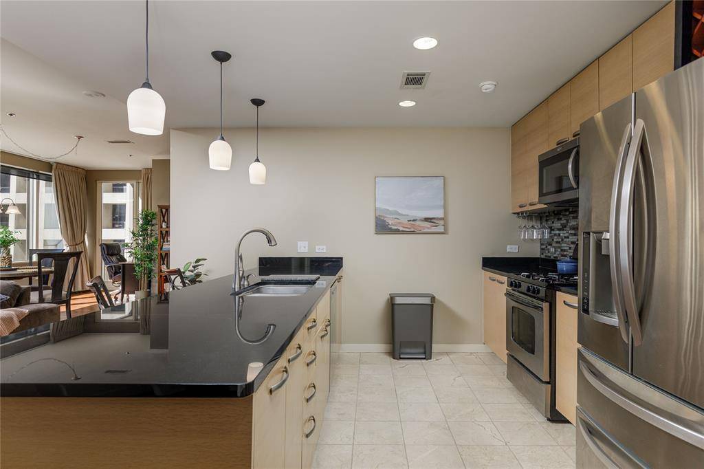 Designed for both comfort and style, the open-concept floor plan seamlessly blends living, dining, and kitchen spaces—perfect for entertaining or enjoying a quiet evening overlooking the city lights. The modern kitchen is outfitted with stainless steel appliances, and the refrigerator, washer, and dryer will convey with the sale for a truly move-in-ready experience.