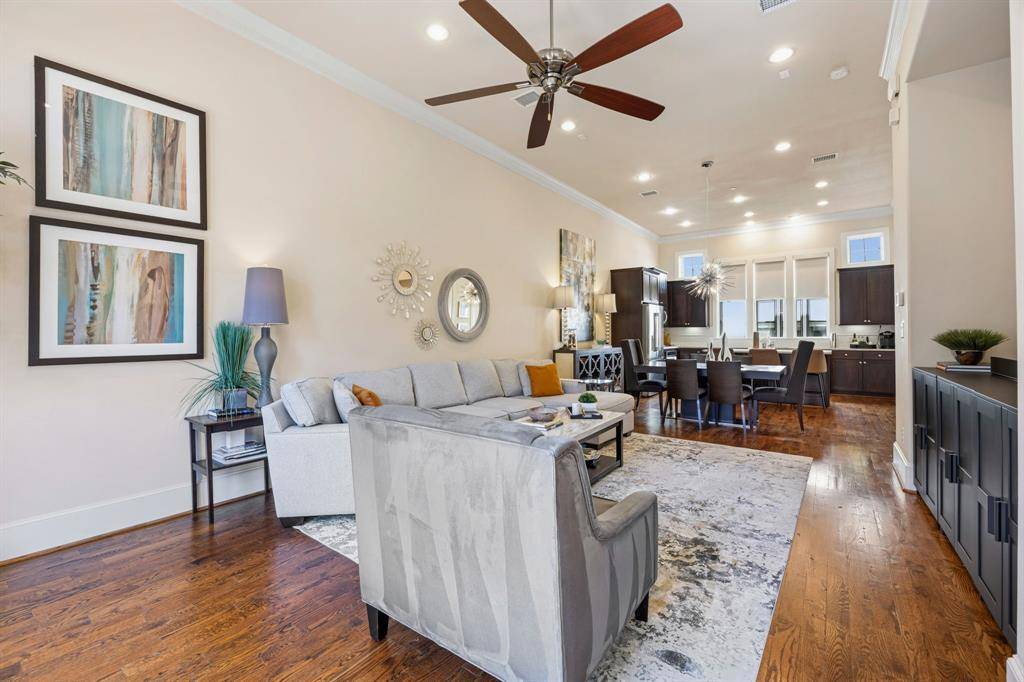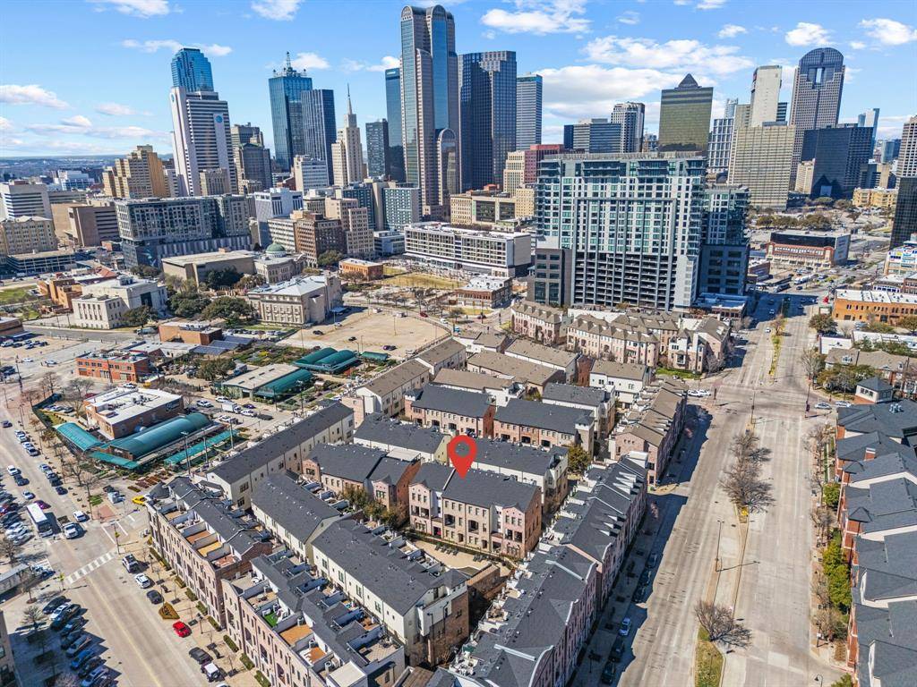 Featuring 3 beds, 3 full baths, and 1 half bath, this exquisite home offers a spacious open concept living, kitchen, and dining area designed for both everyday comfort and effortless entertaining. Timeless architecture evokes the charm of a classic New York brownstone-style walk-up, blending sophistication with urban appeal. The community itself includes a sparkling pool and intimate park areas perfect for relaxation. The island kitchen offers abundant cabinetry, granite countertops, walk-in pantry, and gas cooktop. Sunlight streams through tall windows, while soaring 12-foot ceilings elevate the space with light and grandeur. The spacious living room features large, beautiful windows and offers direct access to the balcony. The large primary suite is a private retreat, featuring a spa-inspired bath with a walk-in shower, jetted tub, and walk-in closet. The 1st and 3rd floor guest bedrooms include their own ensuite baths. The spacious 2 car garage with epoxy flooring, storage closet, and built-in shelving provides convenience and protection for your vehicles from the elements. This chic townhome seamlessly blends comfort, elegance, and lifestyle in a truly prime downtown location. Enjoy quick access to major highways for easy travel to DFW International Airport and Love Field, along with premier destinations such as the Bishop Arts District, Uptown Dallas, and Deep Ellum. Exceptional walkability places you steps from the iconic Dallas Farmers Market for fresh local finds, Harwood Park with playground and green space, and Ruibals Plants for vibrant plants and flowers. Don't miss this chic townhome with undeniable urban appeal, perfectly situated in an unbeatable location!