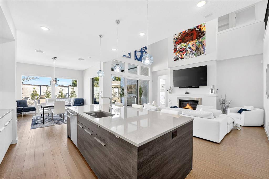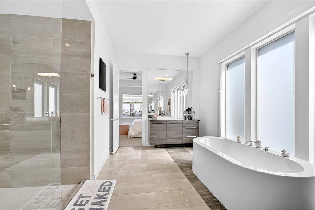 Welcome to luxury living in Mainvue at Phillips Creek Ranch, where style, comfort, and resort-inspired outdoor living come together in one unforgettable home. Step outside and discover what truly sets this property apart, a backyard designed as your own private resort. Lounge beside the sparkling modern pool, host unforgettable gatherings in the fully equipped outdoor kitchen, or unwind under the stars around the stunning conversation fire pit. Whether it's a quiet evening or a lively celebration, this is the kind of space you'll never want to leave. Inside, you're greeted by dramatic soaring ceilings in the living room that fill the home with natural light and create a bright, open atmosphere. The kitchen is as functional as it is beautiful, featuring a large modern island, double ovens, and a gas cooktop — perfectly suited for everyday living and effortless entertaining. The primary suite is a true retreat, highlighted by tall tray ceilings and oversized windows that flood the room with light. The spa-inspired ensuite bath offers a gorgeous standalone soaking tub, separate walk-in shower, and a spacious closet designed for both comfort and convenience. A secondary bedroom downstairs makes an ideal guest suite or multigenerational living option. Upstairs, the home continues to impress with spaces designed for both fun and relaxation. Enjoy movie nights in the dedicated media room complete with projector, big screen, and tiered seating. The expansive game room provides the perfect setting for pool, game nights, or simply gathering together. Three additional upstairs bedrooms ensure everyone has their own private space. For added versatility, one of the garages has been converted into a fully equipped home gym — allowing you to stay active on your schedule without ever leaving home. Offering space, style, entertainment, and everyday convenience, this exceptional home delivers the ultimate lifestyle in one of the area's most desirable communities.