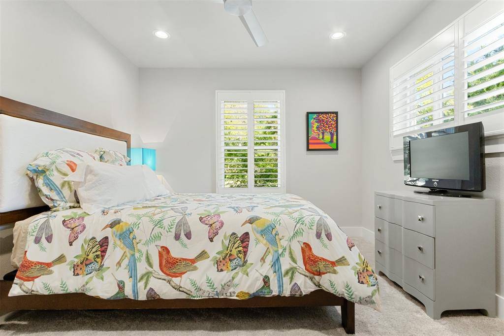 The primary suite features a generously sized bath and closet. Situated on a quarter-acre lot, the home is framed by lush landscaping and a spectacular backyard ideal for entertaining or relaxing.