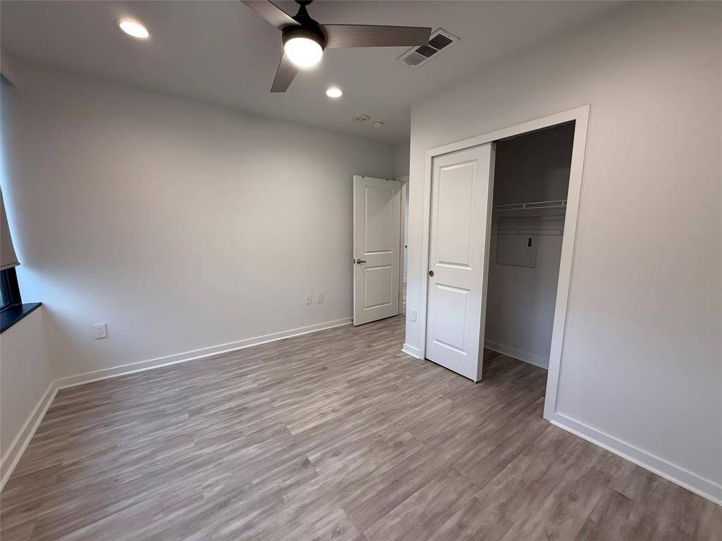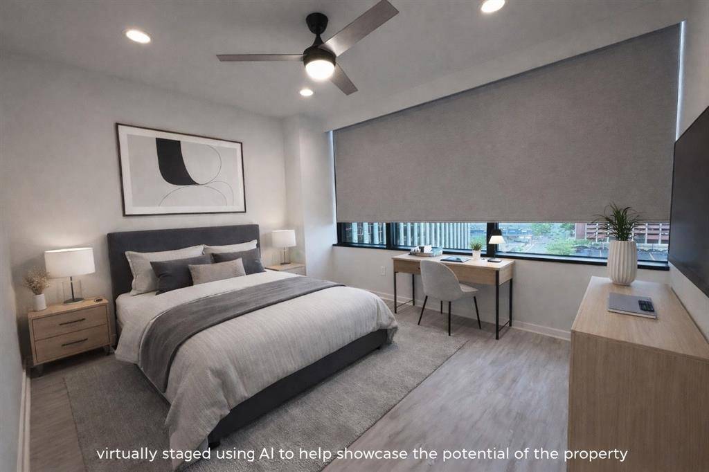 Welcome to the Metropolitan. A completely remodeled high rise located in the heart of Downtown Dallas! The unit is on the 9th floor offering a fabulous open floor plan and generous rooms sizes. The unit looks and shows modern! Automated blackout shades, wood waterproof flooring & LED lighting throughout, updated kitchen with white cabinetry & recently added (less than 5 years) black stainless appliances, spa-like bath with custom lighted mirror, AT&T Fiber, & one assigned garage space. As you enter the unit, you are welcomed with a nice comfortable kitchen with black granite countertops. A breakfast leads to the living area overlooking the city skyline and park below. Bedroom to the left along with utility room and ultra-modern bath room. Building amenities include a security guard and desk at front lobby, community home theater, conf. room, fitness center, pool, community lounge, & green space with grill area.