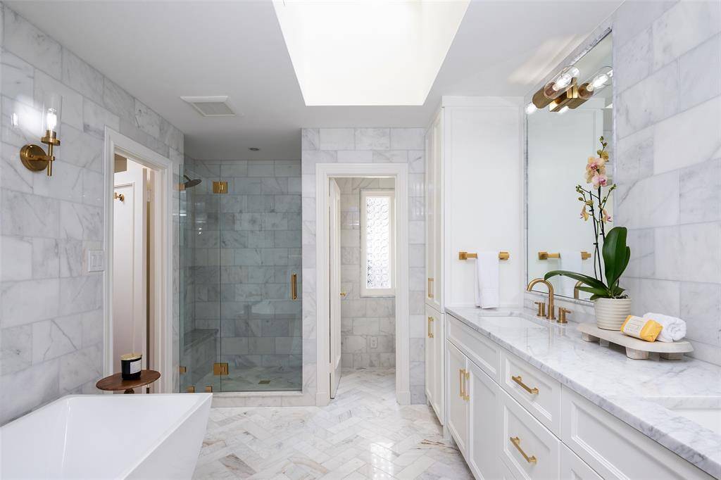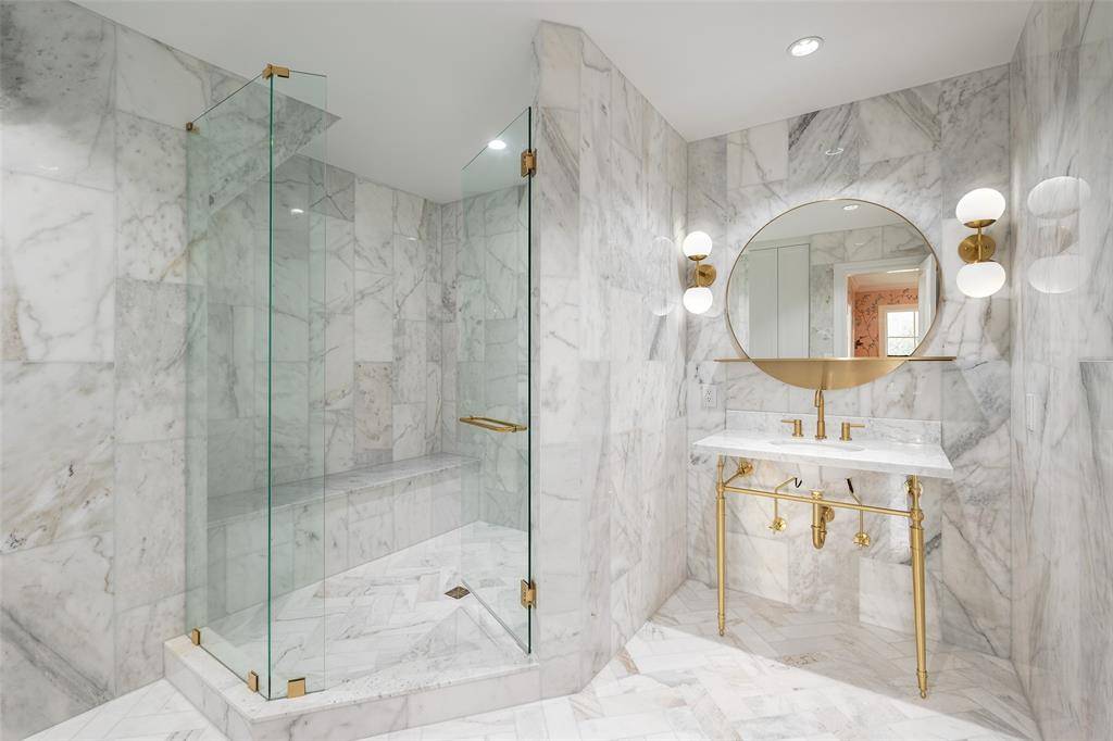 A Rare Highland Park Reimagining Designed by Acclaimed Dallas Architect Hal Yoakum. Some homes are renovated this one was transformed with the kind of intention, investment, and restraint that distinguishes a truly exceptional residence from everything else on the market. Set behind a new motorized gate on one of Highland Park's most coveted streets. The Pennsylvania bluestone pathway leads you to the newly redesigned landscaping and fresh Sierra Pacific windows to an entry that feels immediately, unmistakably right. This is a home that has been loved into perfection. Inside, the craftsmanship rewards attention. New and refinished hardwood floors. Custom leaded glass. A completely redesigned kitchen anchored by natural stone, custom cabinetry, and the full professional suite of Sub-Zero, Wolf, and Bosch that serious cooks actually want. The lacquered living room, the hand-painted silk wallpaper in the dining room, the trellis-accented den, each room is finished with the kind of detail that takes years to source and install. Upstairs, the primary suite is a genuine retreat, wood beam ceilings, a spa-caliber marble bath with painted rift white oak cabinetry, and views into a mature tree canopy that makes the city feel very far away even though you are walking distance to Highland Park Village. Every secondary bedroom is ensuite, every bath fully renovated in marble and custom stone. A flexible fifth bedroom doubles as a playroom or private guest suite with its own wet bar. The elevator a coveted amenity in Highland Park is the kind of feature that quietly defines a home. Whether it's shopping from Highland Park Village, guests arriving with luggage, or the simple freedom of a home that works effortlessly for every stage of life, it transforms two floors into one seamless living experience. Once you have it, you'll never want a home without it. Don't miss your opportunity to own this beautifully transformed home in Highland Park.