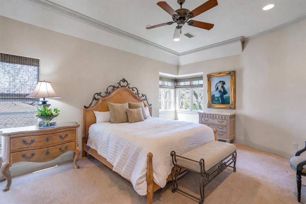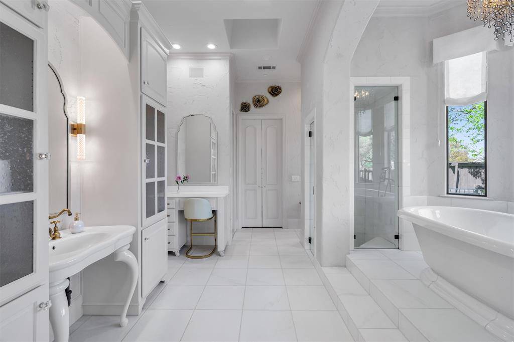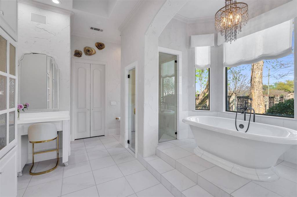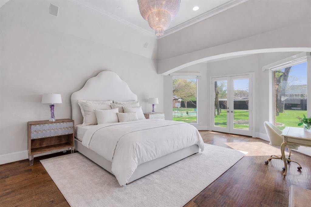 Additional highlights include a small wine cellar, 6-inch hardwood planks that are hand scraped, leak detectioni system, fire suppression system, three-car garage, and generous indoor and outdoor living spaces. Conveniently located with easy access to I-635 and the Dallas North Tollway, and just minutes from Cooper Fitness Center, premier shopping, and dining in Dallas.