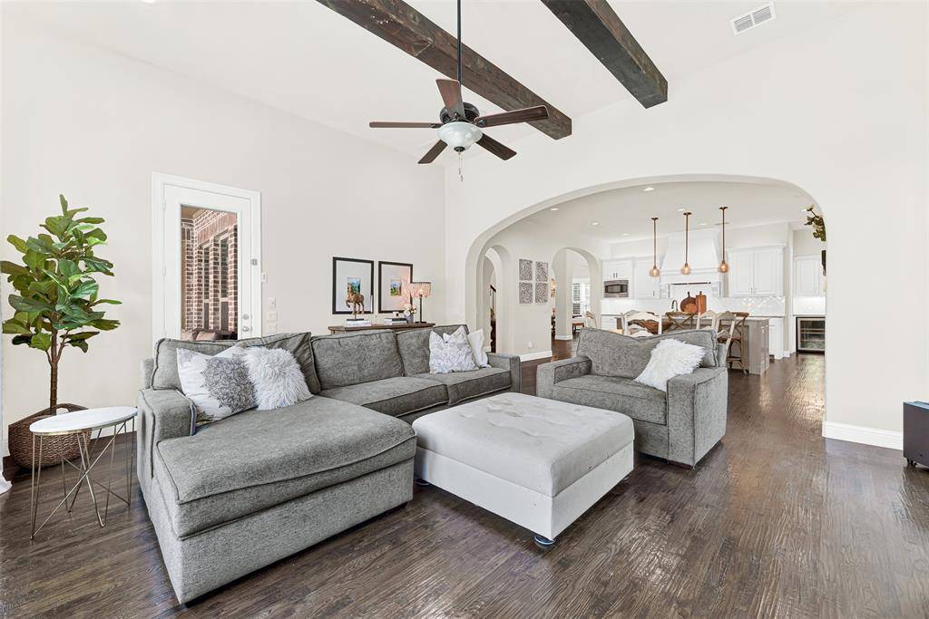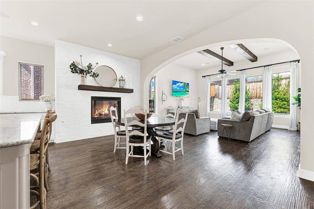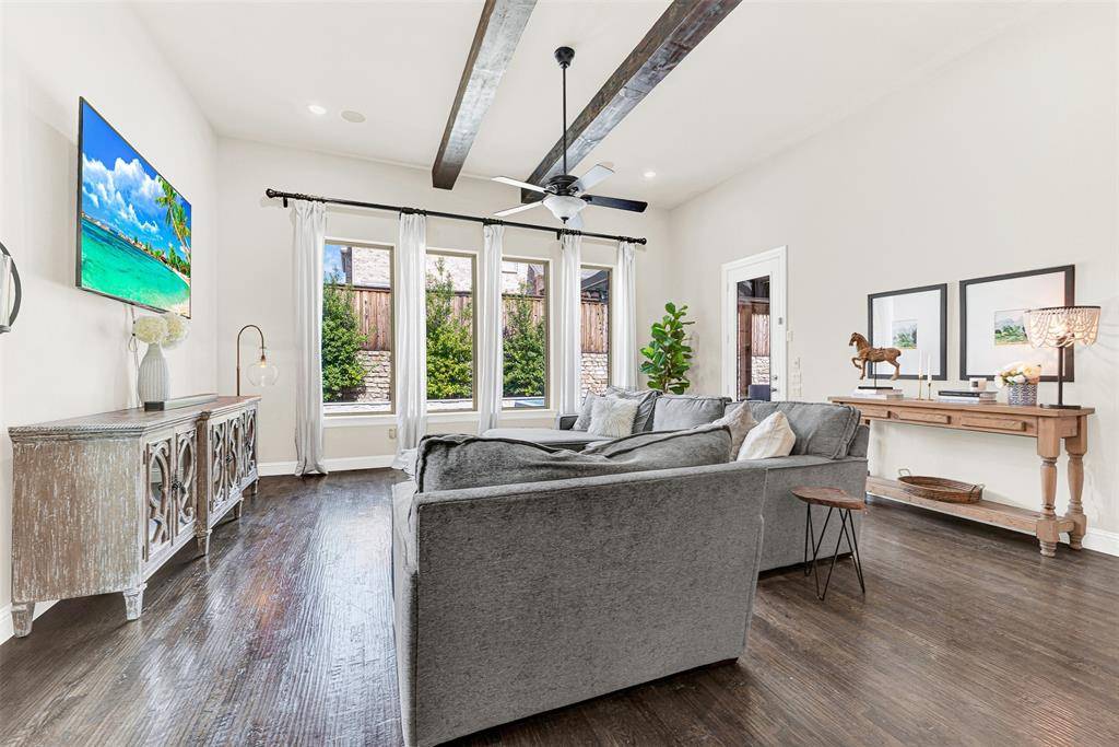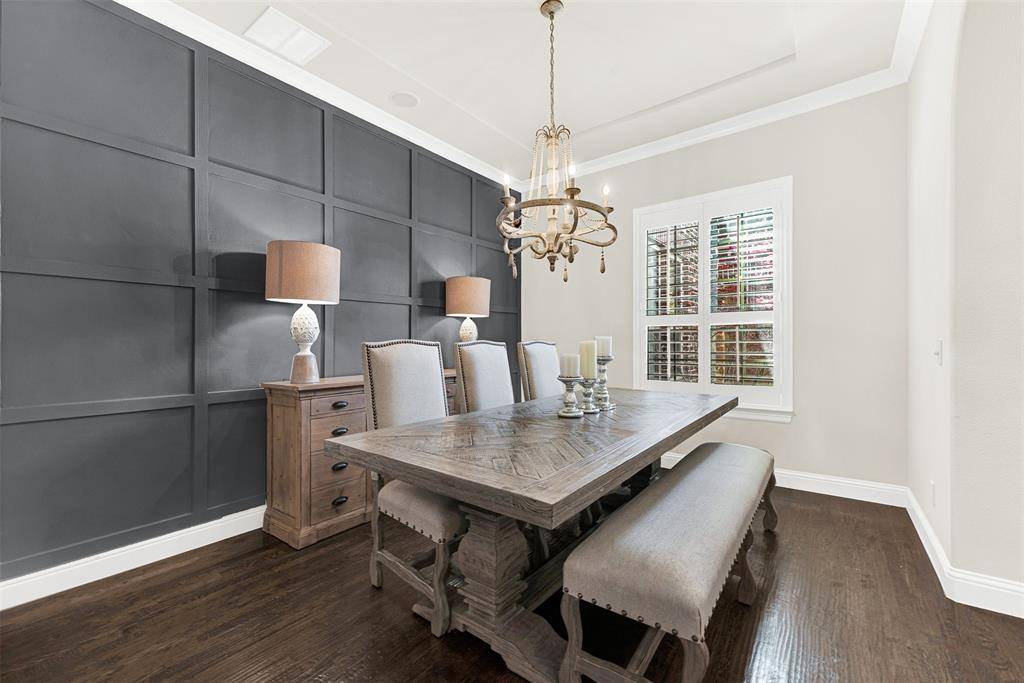 Designer upgrades, soaring ceilings, and a backyard built for entertaining make this one of Frisco's most captivating homes. Welcome to 1344 Horse Creek in Frisco, where thoughtful upgrades and designer finishes create a home that is both beautiful and functional. From the moment you step inside, you're greeted by rich hardwood floors, plantation shutters, and custom accent walls that set a warm yet sophisticated tone throughout the home.