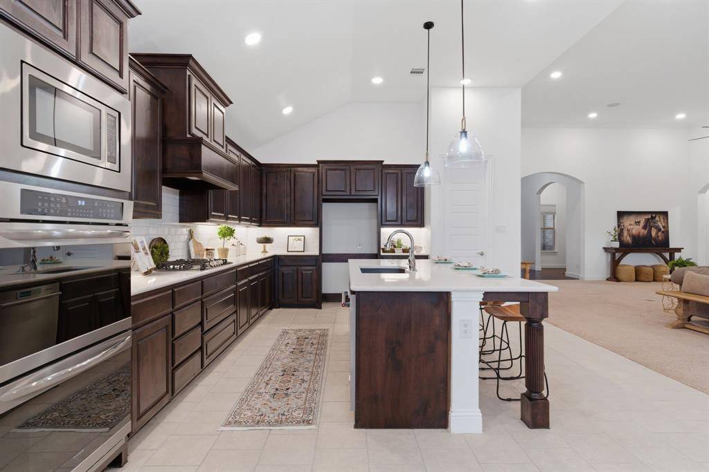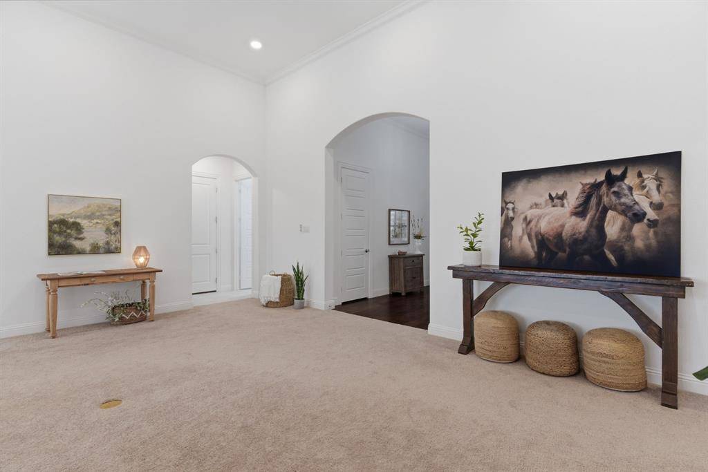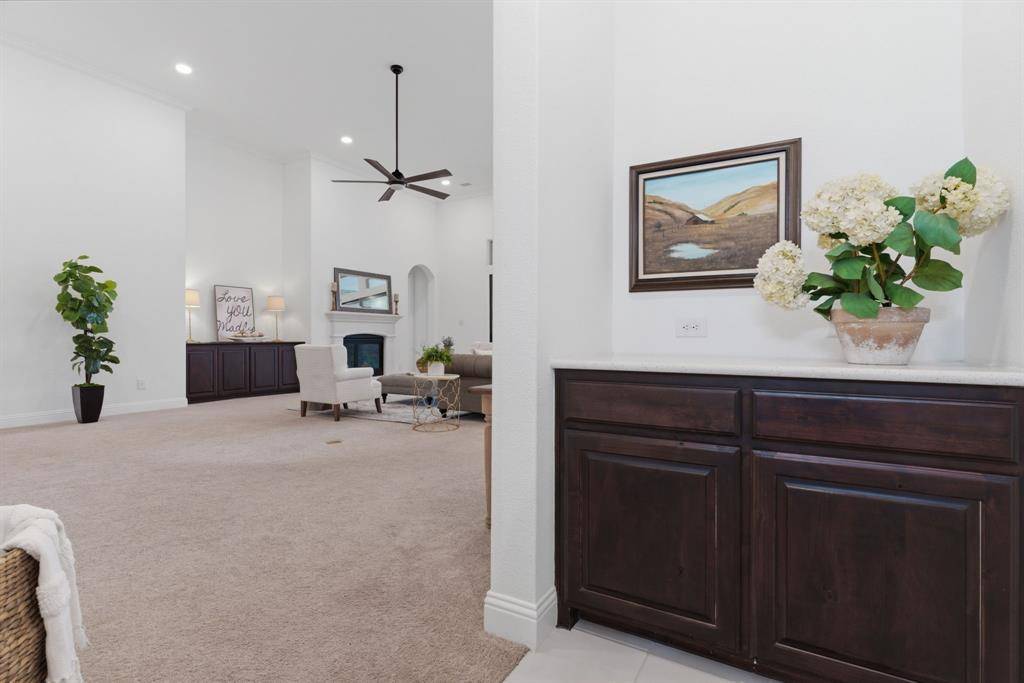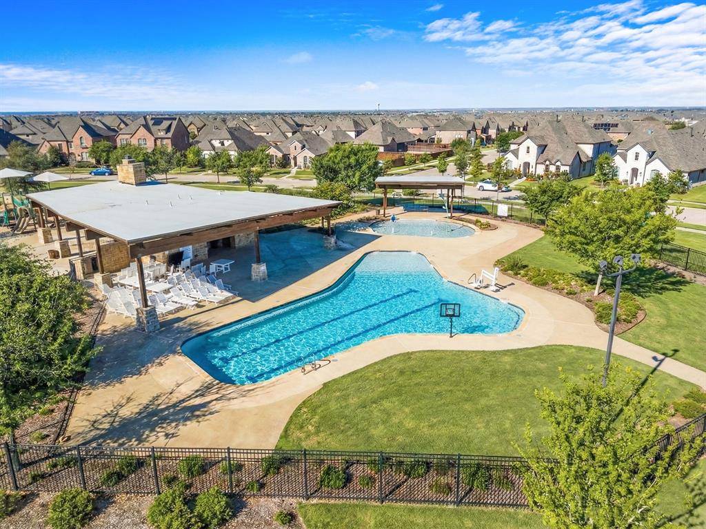 Exceptional north-facing one-story home in Prairie View, Frisco. Situated on over half an acre and ideally located just minutes from the PGA District and the future Universal Studios park, this stunning property offers 3 bedrooms and 4 baths, including 2 private in-suite bedrooms within the total bedroom count, a study with built-ins, and a versatile flex room that could serve as a game room, workout room, or optional fourth bedroom. Every room is oversized, with extra-high ceilings throughout most of the home. The thoughtfully designed floor plan features an extended primary suite, a second private suite ideal for guests or multigenerational living, and a spacious 3-car tandem garage. The premium smart-home package includes CAT5 wiring and mounted speakers throughout. The expansive backyard is an entertainer's dream, featuring a sparkling pool, fountain, lighting and spa, a 1,132 sq. ft. travertine paver deck that stays cool during the hot summer months, a covered patio with electric screen shades, an outdoor kitchen, and a 20-foot BBQ bar complete with a Bull Angus built-in grill and refrigerator. A rare opportunity to enjoy luxury living in one of Frisco's fastest-growing locations.