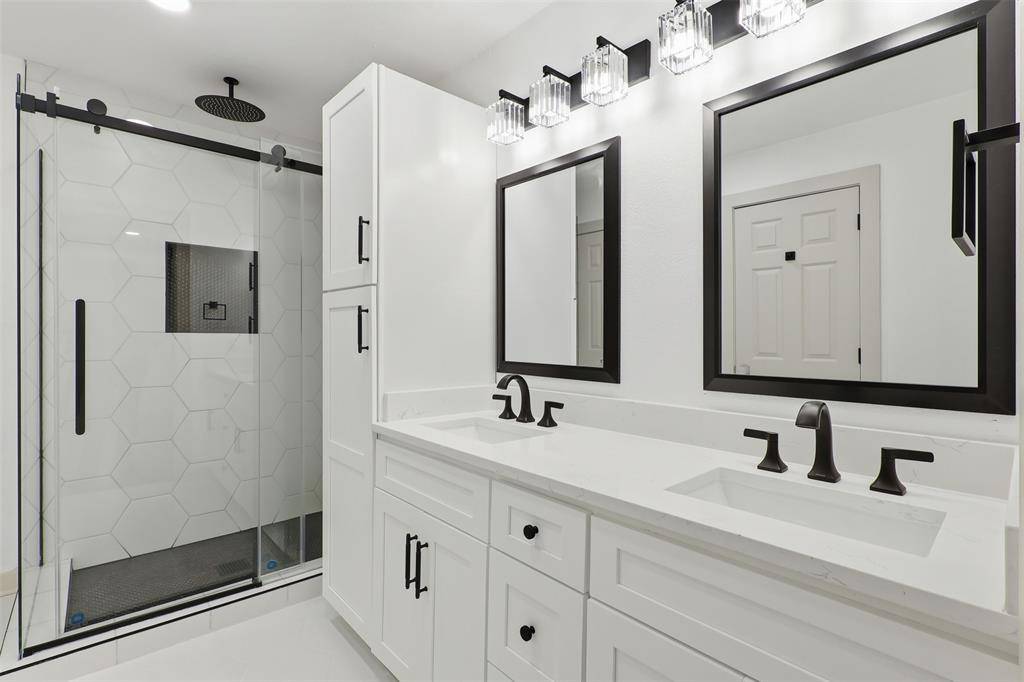 Both bathrooms have been completely updated with new vanities, fixtures, and custom tile work. A dedicated laundry room has been added for additional convenience.