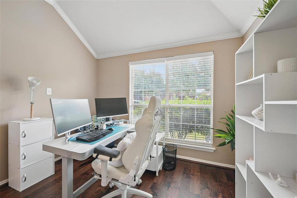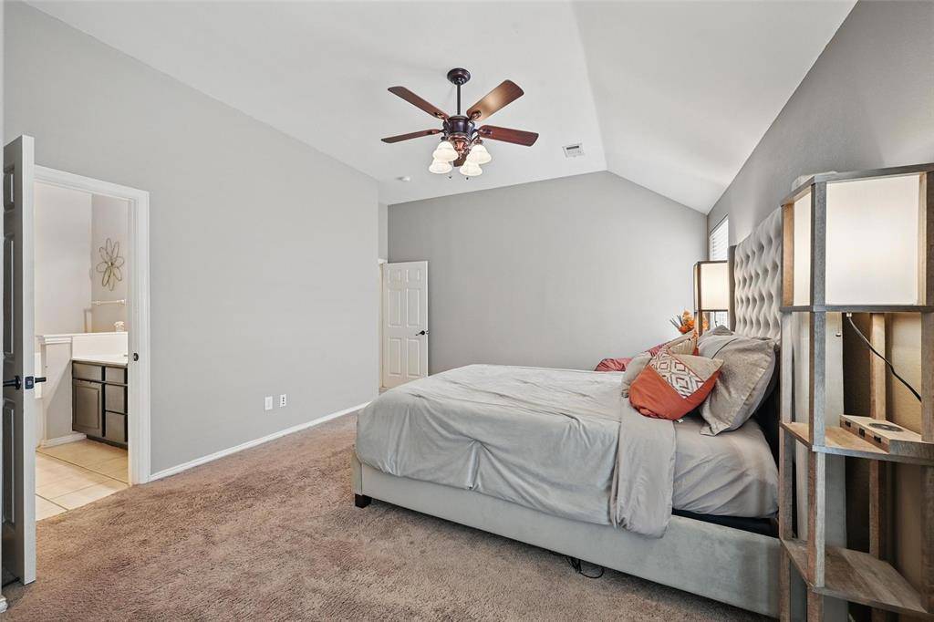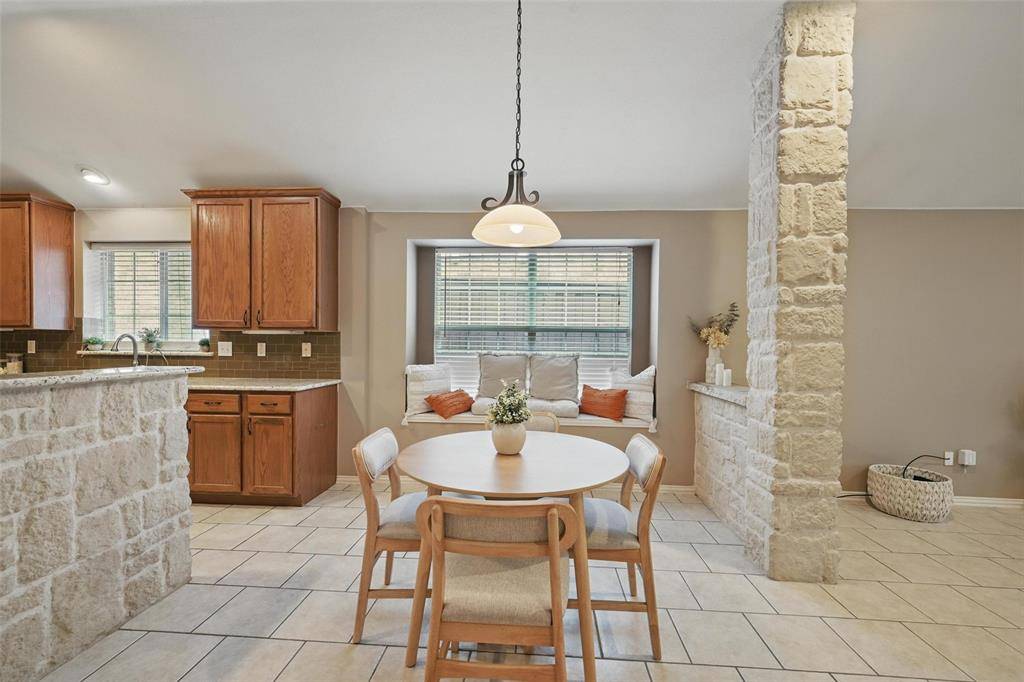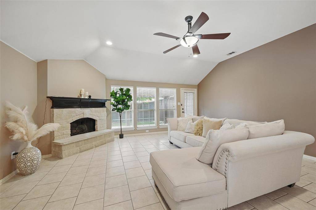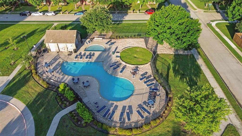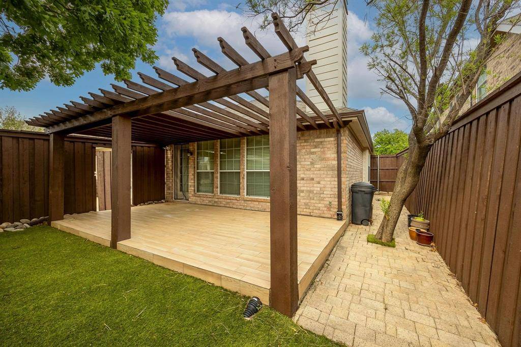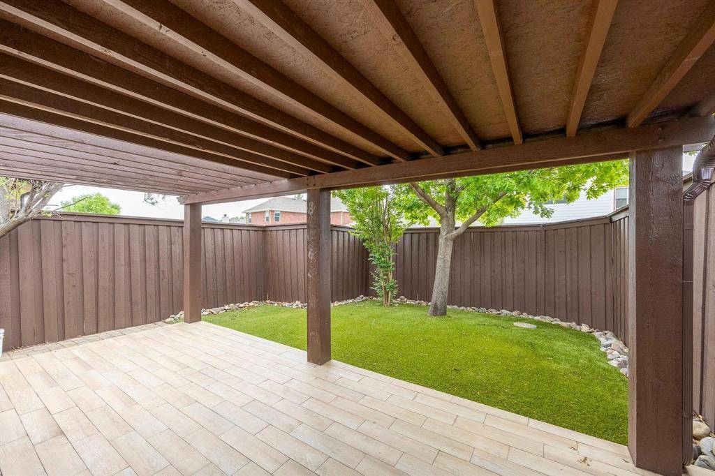 Welcome to this well kept single story home in the Grayhawk community, zoned to Frisco ISD, offering 3 bedrooms, 2 bathrooms, a study, and a layout that flows easily for everyday living. The oversized kitchen opens to the living room with a fireplace, making it great for hosting, and features granite countertops, stainless steel appliances, a gas cooktop, and two dining areas. The primary bedroom is separate from the others and offers a spacious bathroom with a jetted tub, separate shower, double vanities, and a walk in closet. The backyard is nicely finished with a covered patio and pergola, artificial turf, and pavers for low maintenance living. Recent upgrades include a new roof in November 2022, an 8 foot cedar fence, foundation drip system, French drain, and kitchen updates completed in 2016. The home is also in a great location, just half a block from one of the community pools, and close to a greenbelt, walking trail, and pond with fountains.