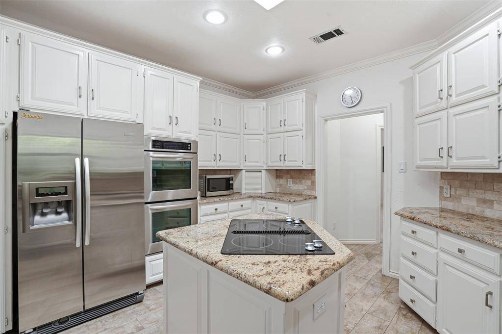 The oversized primary suite serves as a private retreat, complete with a versatile sitting area, perfect for a home office, fitness space, or cozy reading nook. Secondary bedrooms are tucked away in a separate wing, each featuring walk-in closets to provide privacy and convenience. At the heart of the home, the kitchen is well-appointed with granite countertops, stainless steel appliances, abundant cabinetry, and a charming breakfast nook, seamlessly connecting to the main living area. Step outside to an expansive backyard shaded by mature trees and enhanced with a sprinkler system, offering endless possibilities for a future pool or custom outdoor living space. Additional highlights include two HVAC units replaced in 2022 and an oversized three-car garage with epoxy floors. Ideally located just minutes from premier dining, shopping, and DFW International Airport.
