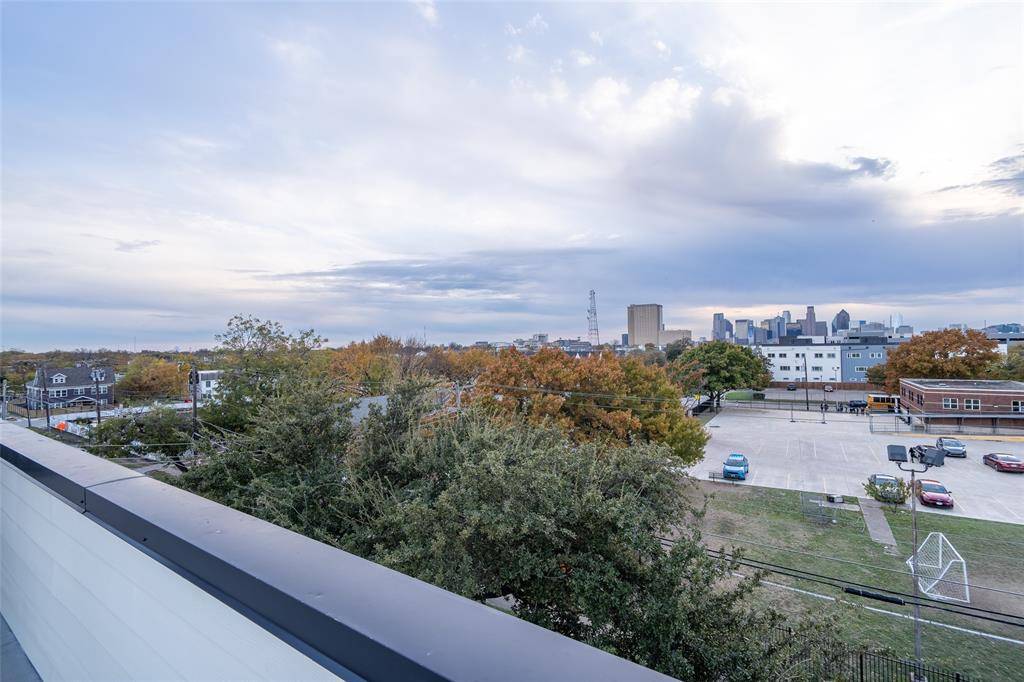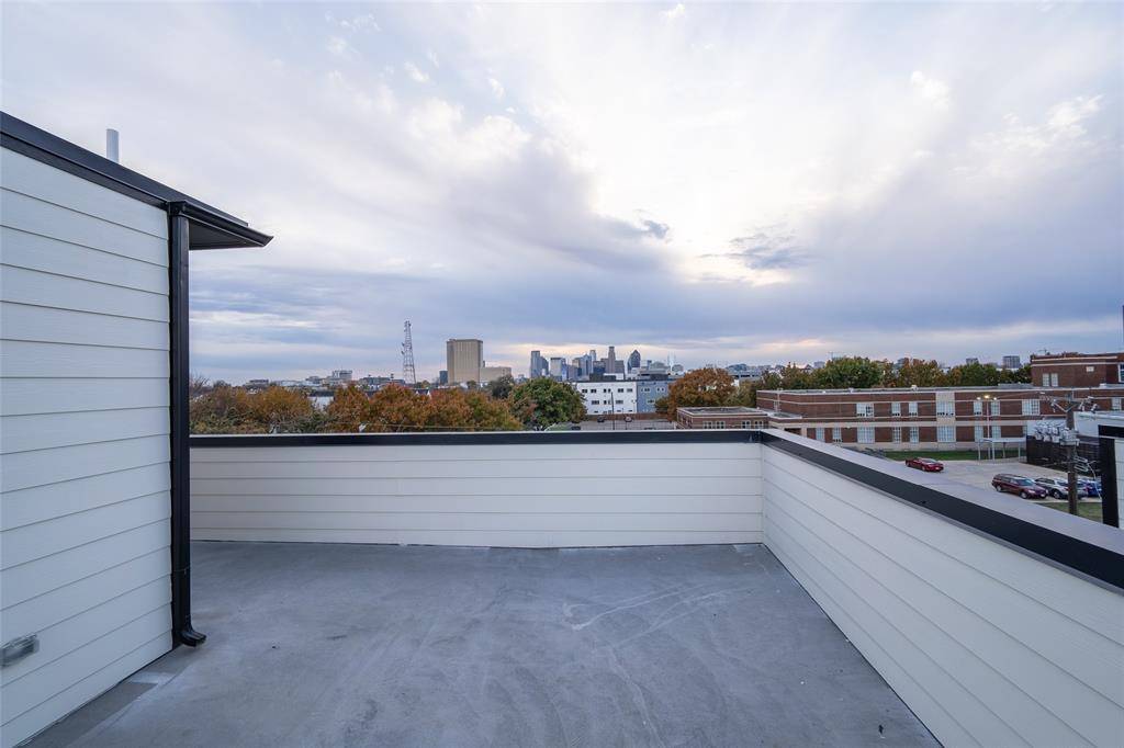 The open-concept main living area is designed for comfort and entertaining, complete with stainless steel appliances, a spacious kitchen island, pantry, and contemporary finishes throughout. Enjoy outdoor living with a front yard, plus a fourth-floor flex space that opens to a private rooftop deck showcasing stunning downtown Dallas views.