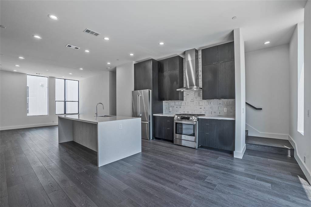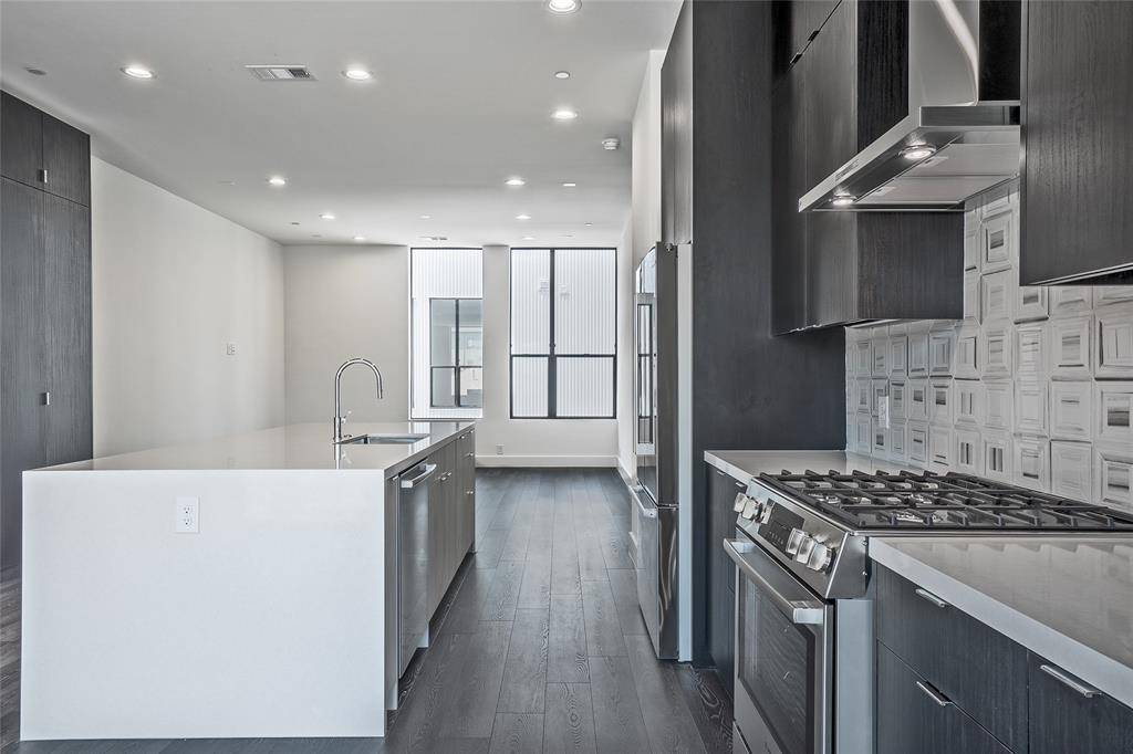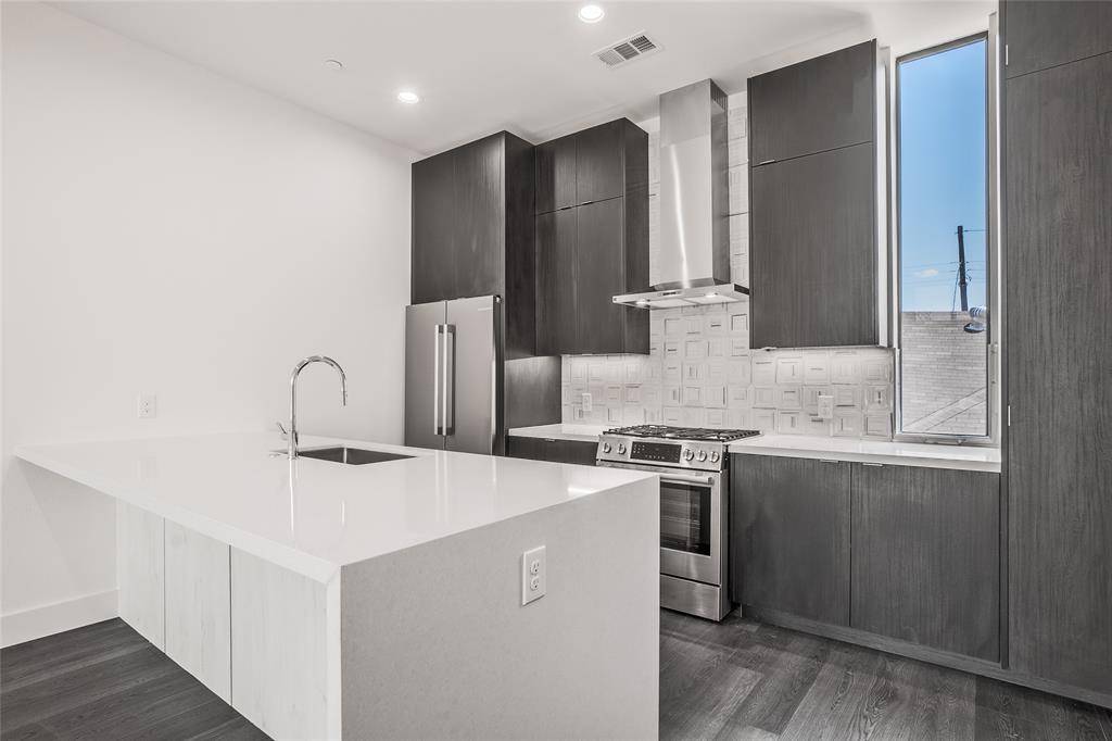 Luxury, sleek, modern townhome community, located in historic East Dallas Large ROOF TOP DECKs, soon to be turfed with spectacular views of Downtown Dallas. Luxurious new contemporary living with spacious accommodations. Efficient & open floor plans with thoughtful architectural design seen throughout. High end finishes with quartz counters, modern flooring, SS appliances, built in cabinets and large island opens to the living & dining areas and much natural light! Walk in closets. Plenty of extras as well. You'll love the location! Just off Ross Ave and PRIME location between downtown, uptown, and Lower Greenville!. A short walk to restaurants, bars and shopping. Multiple units and options available for move in Now. (Washer, Dryer are not included)(Tenant to pay landlord $85 per month for Water, Sewer and Trash Service)